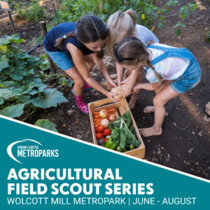 Join us on a learning adventure to become an Agricultural Field Scout! Receive your AgBadge guide which will lead you through an exciting exploration of agriculture – what you eat, wear, and use every day. Throughout your journey, you will have the opportunity to earn five different badges. Sessions vary. You can start at any time and some badges can be completed at home. Come once or come to every session and get started earning your badges.06/17/2026 AgBadging: Farm Tour06/24/2026 AgBadging: Seed Sprout07/01/2026 AgBadging: Soil Investigation/Compost Bottle07/08/2026 AgBadging: Ag and Me07/15/2026 AgBadging: Life Cycles07/22/2026 AgBadging: Pollinator Hotel07/29/2026 AgBadging: Eating Plants08/05/2026 AgBadging: Build A Barn08/12/2026 AgBadging: Food Supply ChainWhat to Expect:This program is mainly outdoor and in unheated barns. The planned path is dirt and gravel. The program is 60 minutes in length.Ages: Children ages 5 – 12.Time: 11 a.m. – NoonCost: $3 per child.Location: Wolcott Mill Metropark, Farm Center