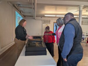 Partnerships with libraries in the region have allowed the Metroparks to bring programming to library audiences of all ages and interests. Here, adults in a rain garden program learn about the soil, plants, and requirements of rain garden installation and maintenance.